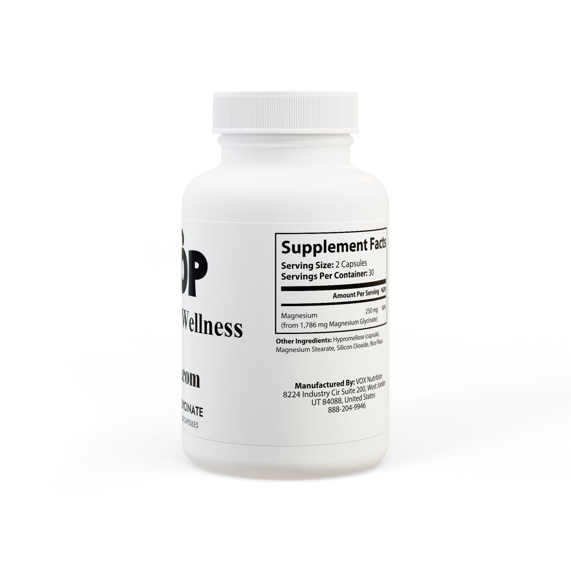 Ingredients: Magnesium (from 1,786 mg Magnesium Glycinate). Other Ingredients: Hypromellose (capsule), Magnesium Stearate, Silicon Dioxide, Rice Flour.